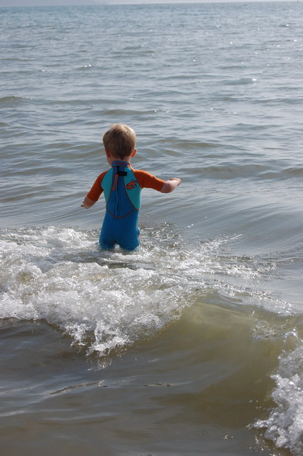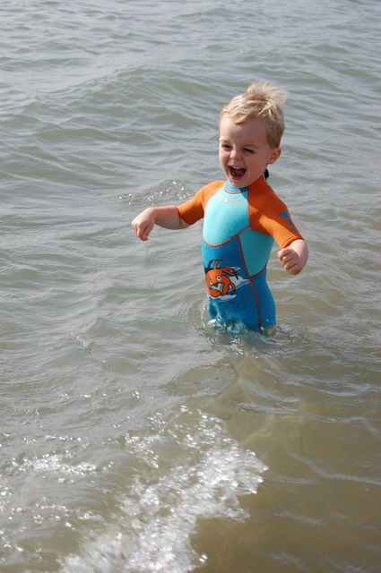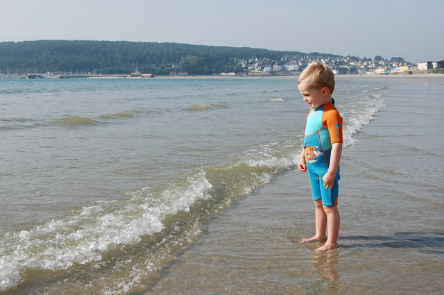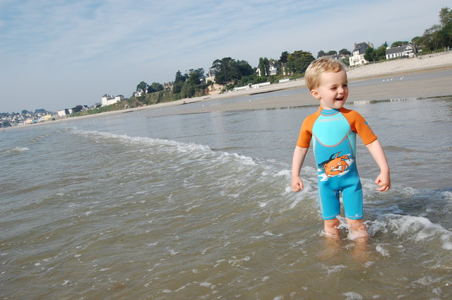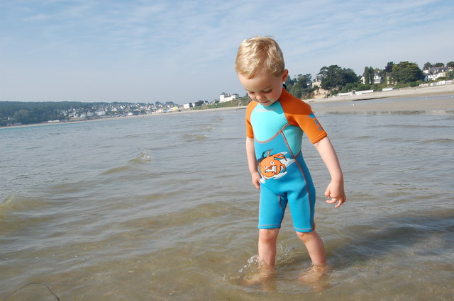Notre petit animal étant habitué à une eau à 37°C dans son appart cosy du 92, nous décidons de lui acheter une combi, pardon, LA COMBI qui lui permettra de rester un peu plus longtemps dans l’eau et de profiter ainsi pleinement de la mer et de la plage.