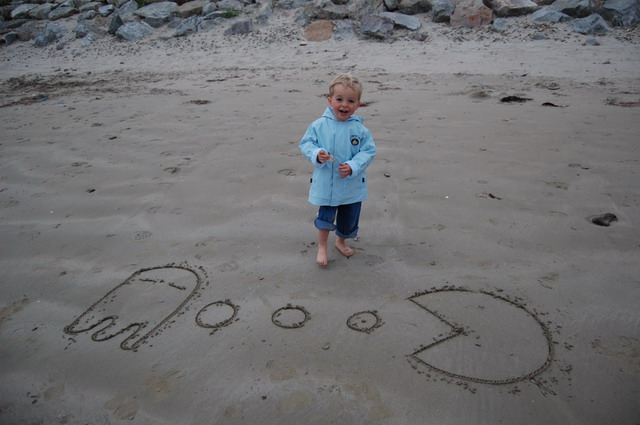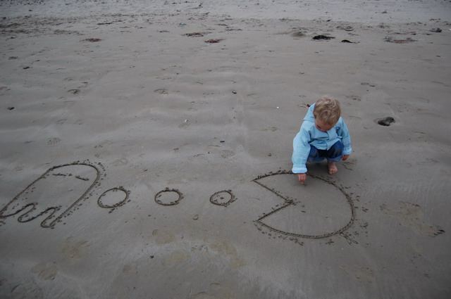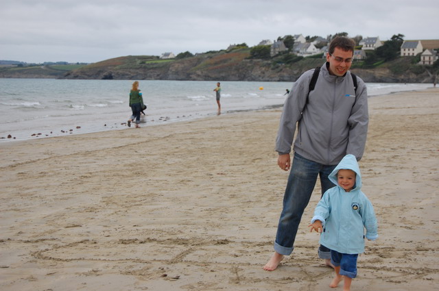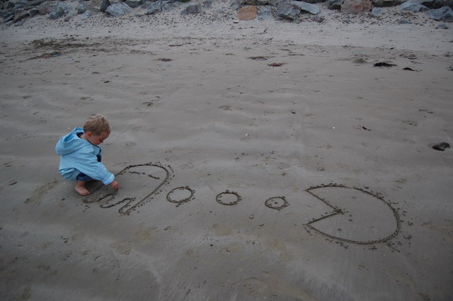 Ceci est notre tout dernier jour en Bretagne. Au programme : dessins sur le sable, grande balade sur la plage, grimpette sur les rochers, dernier bain de pieds (pieds uniquement car il fait frisquet -juste ce qu’il faut pour qu’on ne soit pas trop déçu de partir) :
