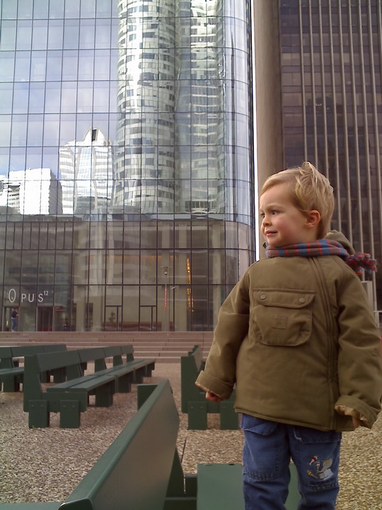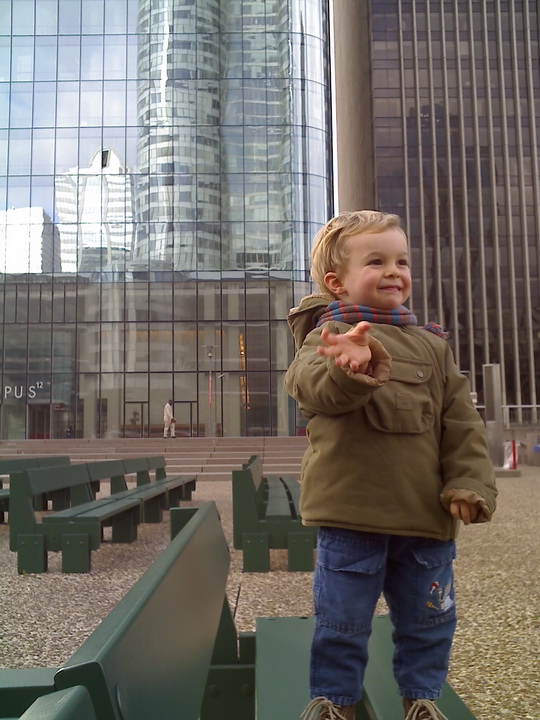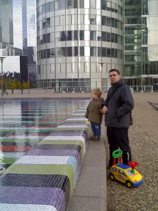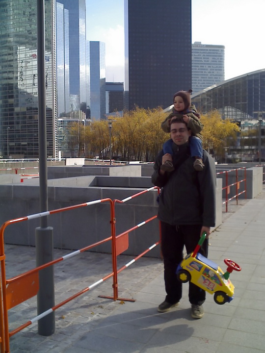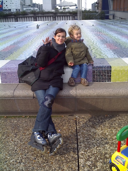 Eh bien du rollers… à La Défense. Petite remise en jambes car on n’en a pas fait depuis que Kelyan est né. Disons que ça se passe plutôt pas mal même si les freinages sont peu académiques. Kelyan est le seul sans roulettes alors il s’ennuie. Il n’a pas l’habitude que ce soit à lui de nous courir après. On lui dit que la prochaine fois, Tonton Nicolas viendra et pourra le prendre dans les bras en rollers et il verra à quel point c’est fun et ça va vite. Oui, parce qu’en tant que parents responsables et réfléchis, on ne préfère pas risquer de briser notre fiston en 2 en chutant malencontreusement sur une dalle qui dépasserait d’1mm des autres dalles 😉 A bon entendeur Nico….