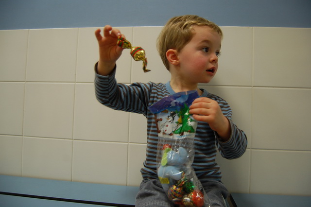 Le cadeau suprême : du chocolat et une petite peluche en forme d’éléphant :