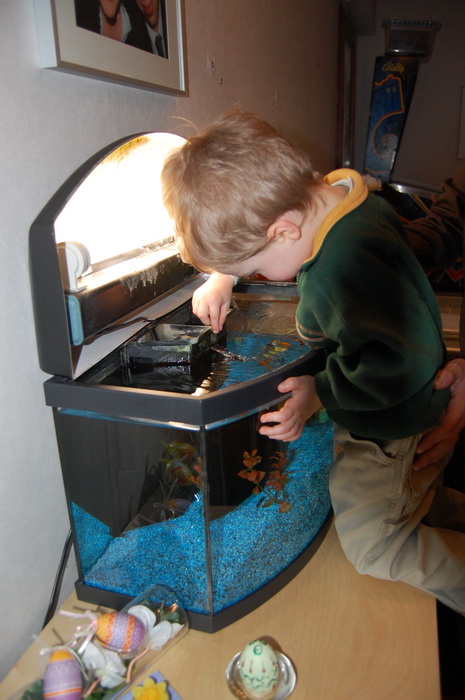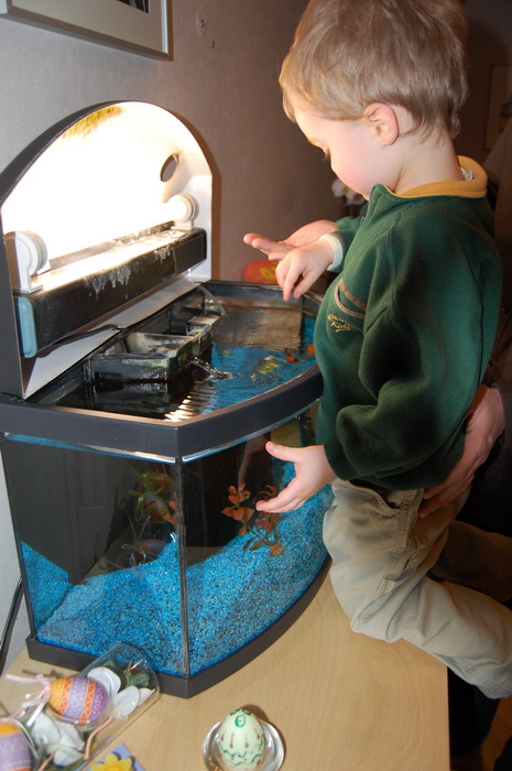 Désormais, Kelyan réussit à toucher les poissons (Stendhal donc, Titi & Manu !!) au moment du repas :